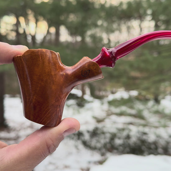 …click, click, click. Down through the chimney with good St. Nick! With a tall bowl that echoes the fat man’s favorite entry point, and its sweeping red stem, this pipe is perfect for a contemplative Christmas evening by the fire. It’s ready for Santa himself to pack with his favorite blend before dashing away.